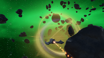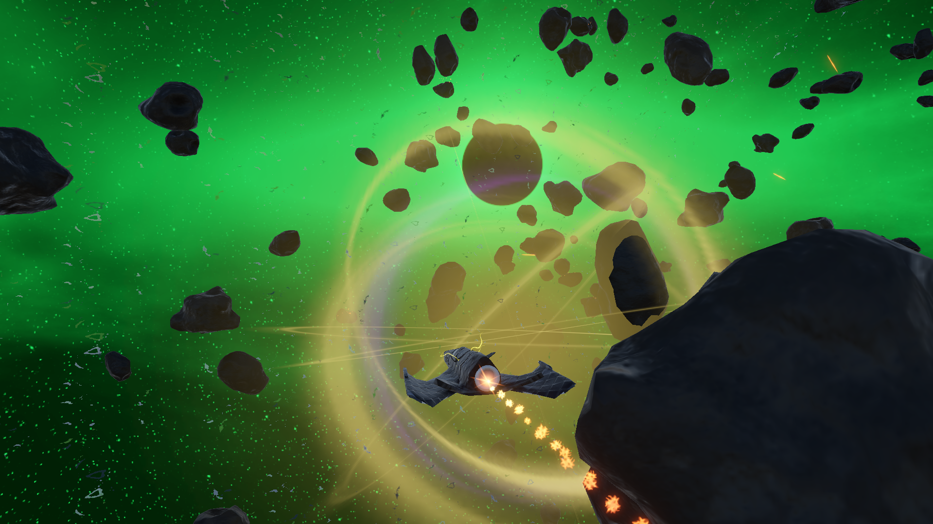 In Bent Realities, you travel through a cylindrical corridor of distorted space, racing toward the next portal while navigating unpredictable asteroid fields.